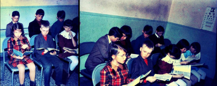Diane vers 6 ans, au cours de solfège. Mes frères sont derrière moi.