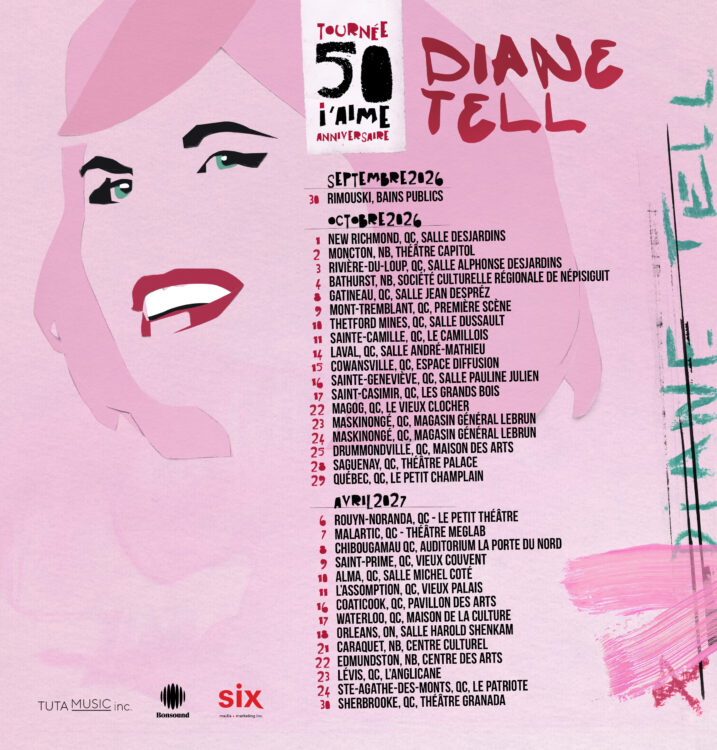 Je n’aime pas les anniversaires. Noël, encore moins… et je suis née pendant le réveillon ! Entre la dinde et les cadeaux. J’aurais pu finir dans la crèche avec le petit Jésus ! Exactement comme Zac dans le film C.R.A.Z.Y. de notre si cher et regretté Jean-Marc Vallée. Chez Bonsound, notre belle maison de concerts, quelqu’un a lancé l’idée : « Diane, ça te dirait de faire une tournée anniversaire ? » Je n’ai pas dit oui tout de suite. Bon. Un 50 i’aime. Quand même. Ça se fête ! Et puis, on sera tranquille. Il n’y aura pas de 100 i’aime ! J’ai mordu à l’hameçon comme un beau doré du lac Blouin… et j’ai signé. Déjà 35 concerts programmés au Québec, en Ontario, au Nouveau-Brunswick. C’est fantastique.